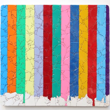I started glueing the vinyl to the picture flat as a mosaic as a variation of my vinyl pictures in 2013. The surface was much smoother. The shape of the broken vinyl creates a different background texture from usual mosaics because of the different size of the pieces. I explored the material with figurative and … Mehr Vinylmosaike 2013 – 2018