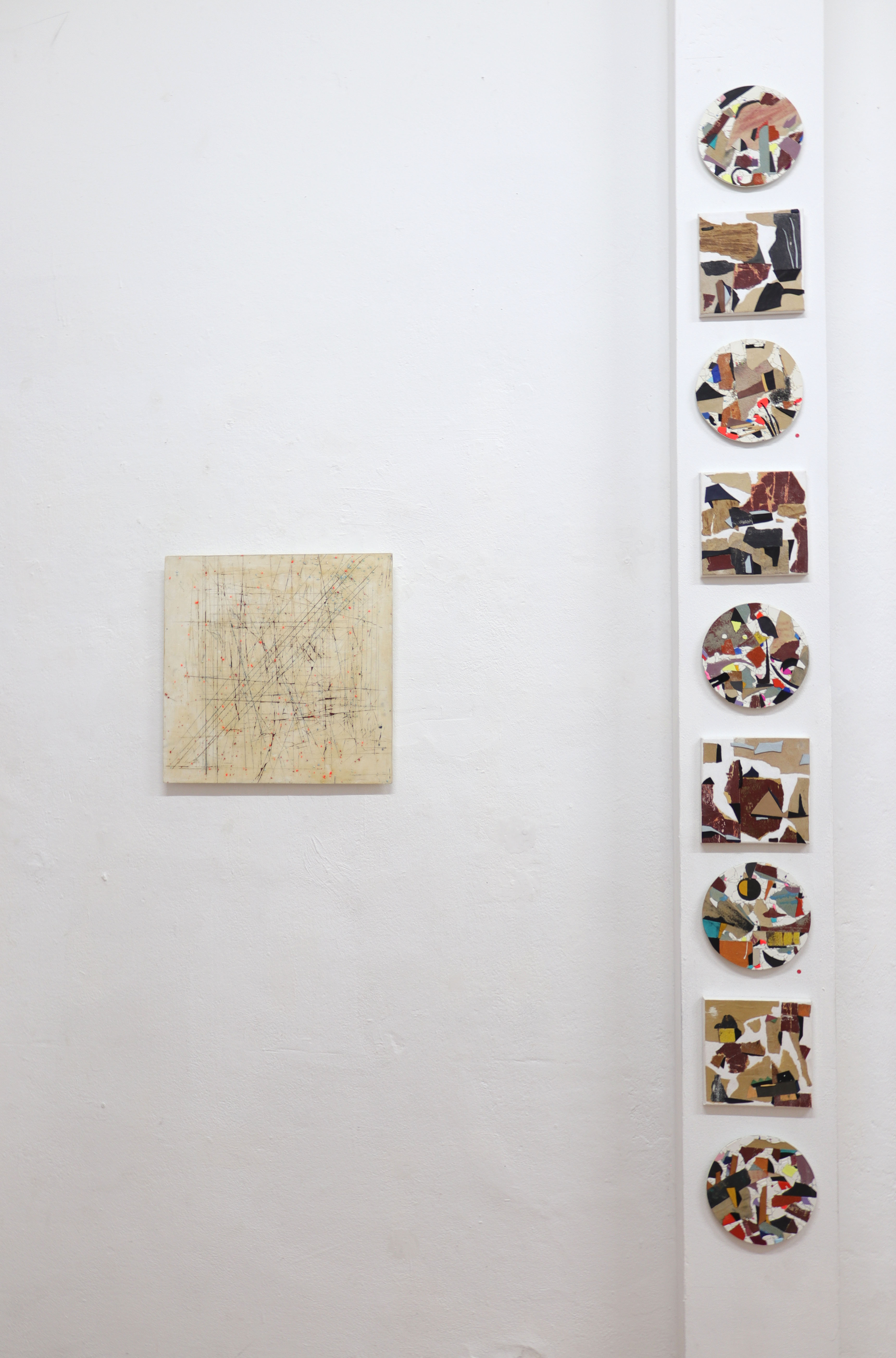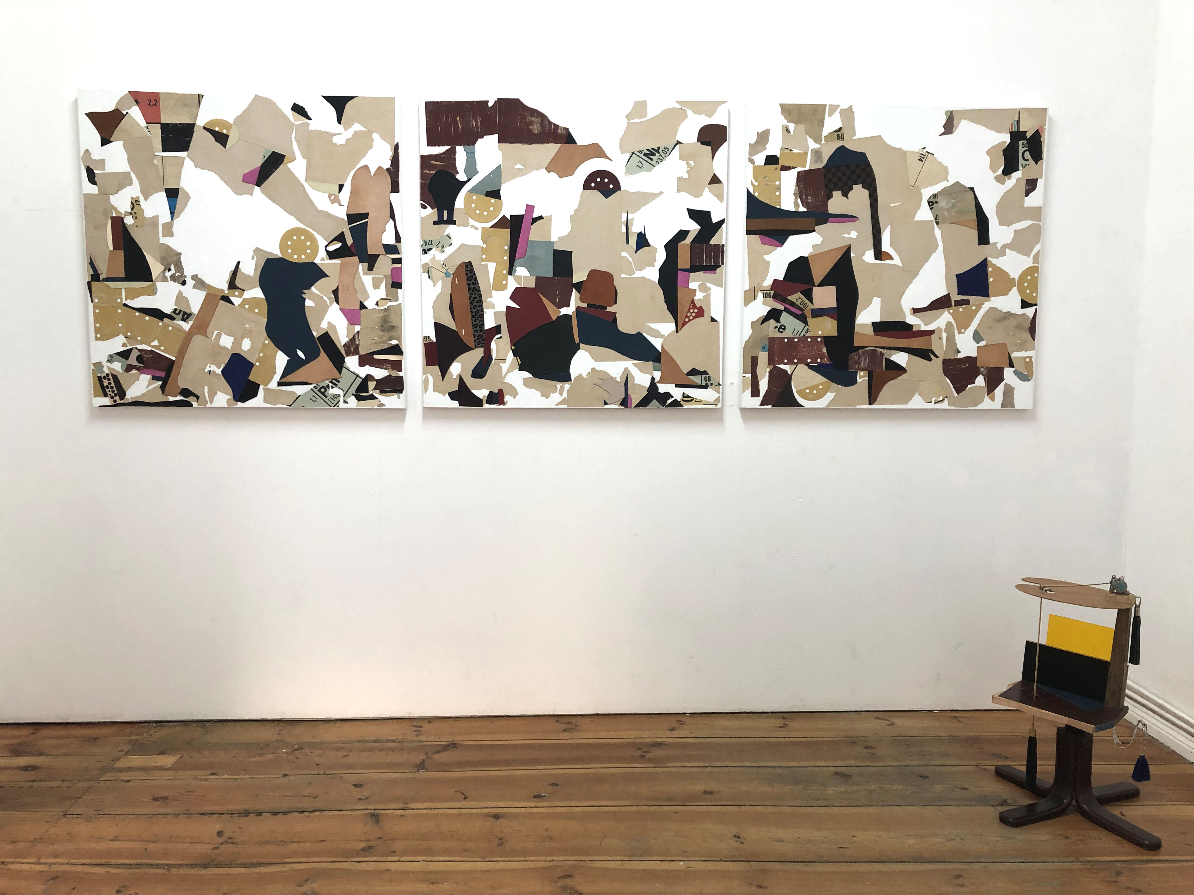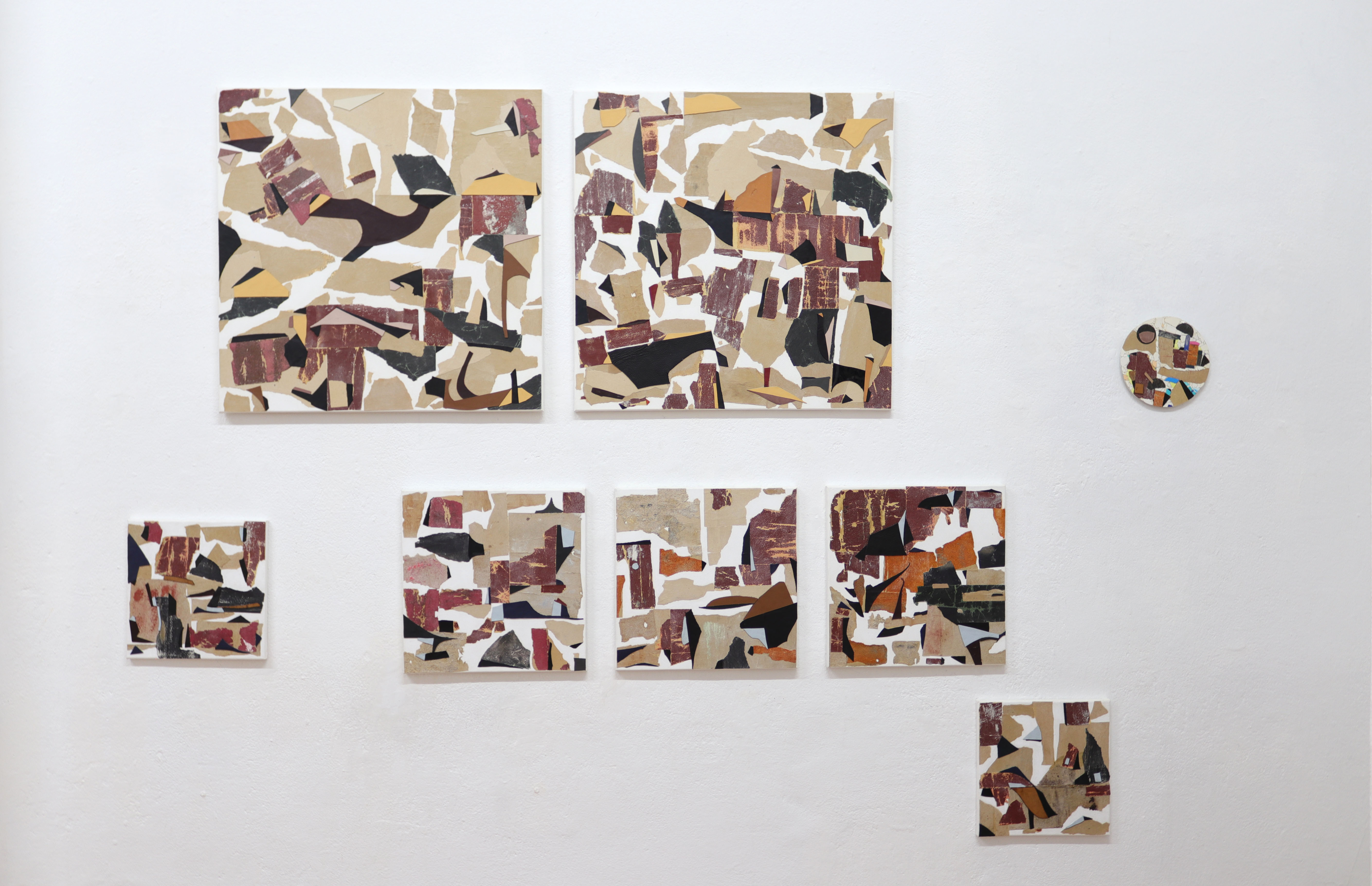 A collection of collages with sandpaper, leather and fragments of a periodic table. 2020 – 2022. Some works still contain vinyl but most of the pictures are on canvas. I also managed to finish 2 new sculptures and a installation with rope.. Enjoy the ride.