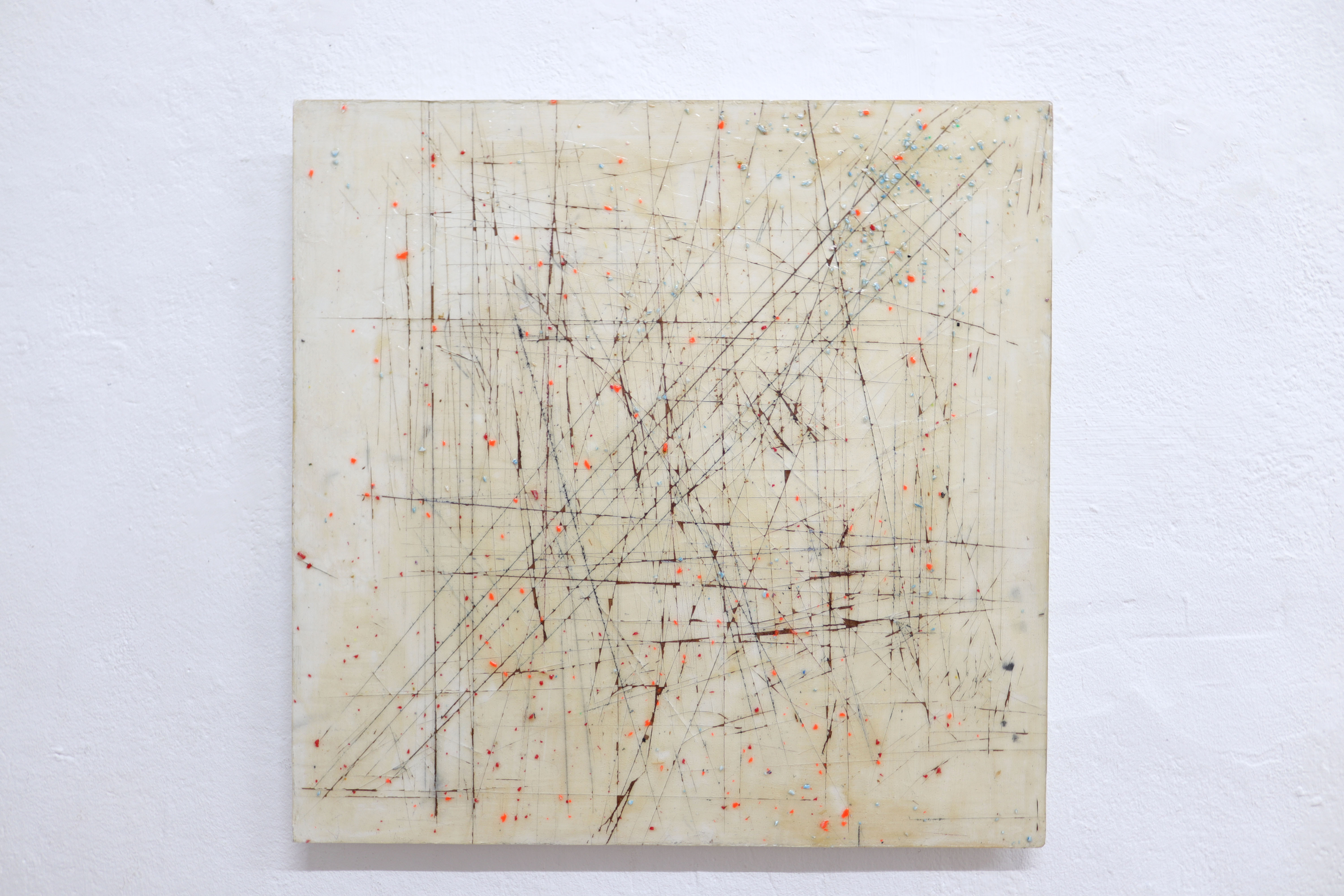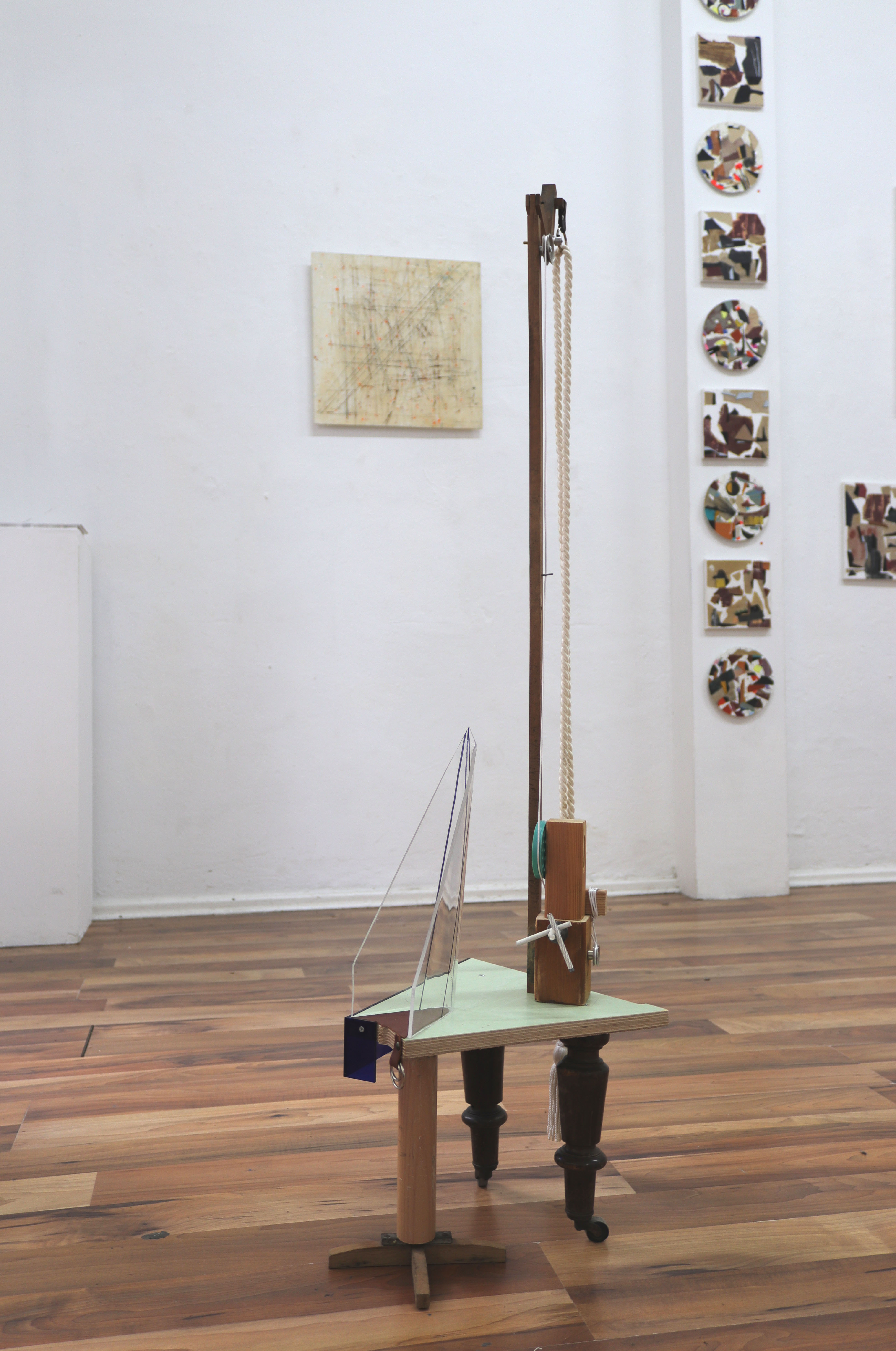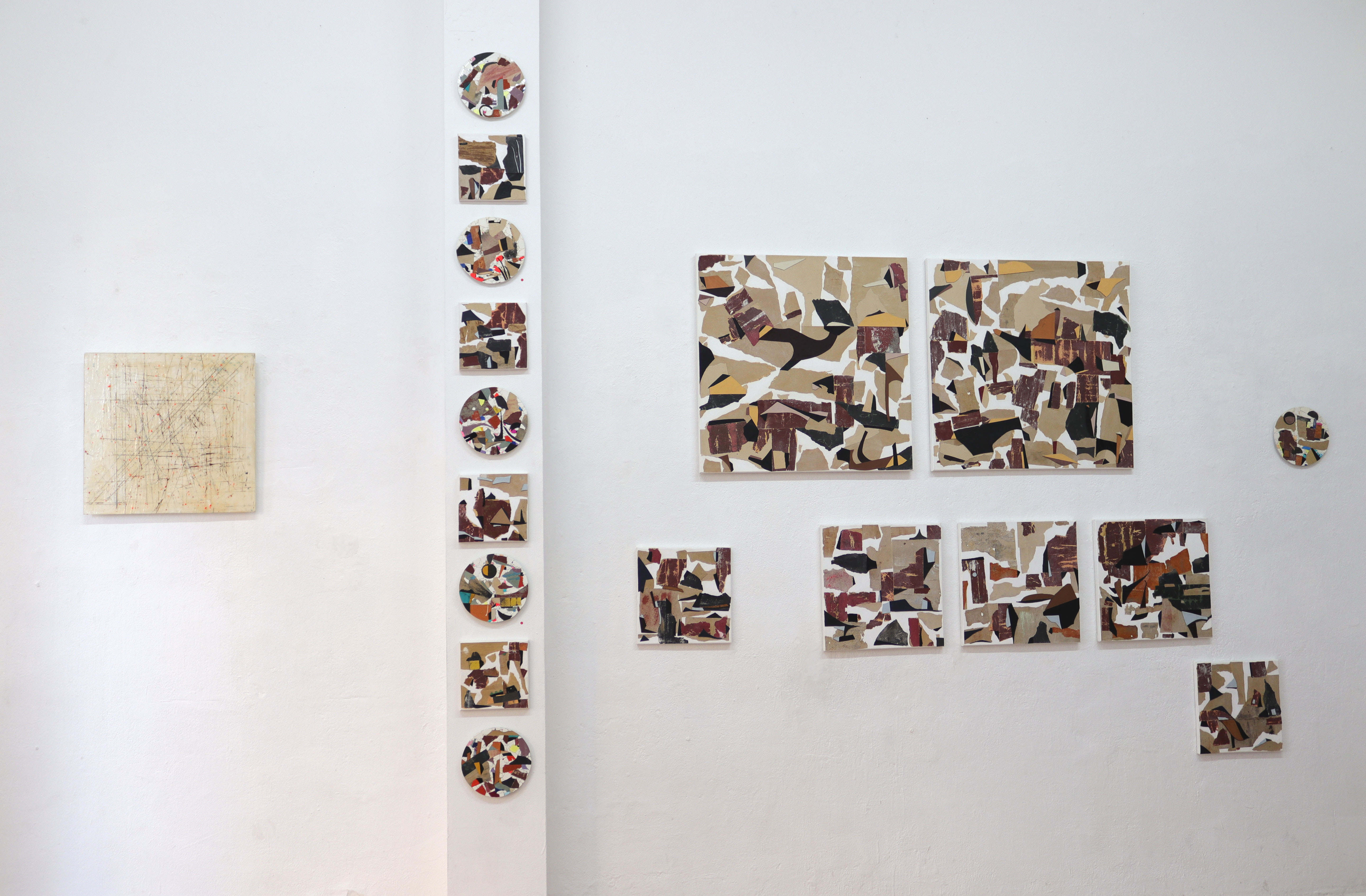 A collection of collages with sandpaper, leather and fragments of a periodic table. 2020 – 2022. Some works still contain vinyl but most of the pictures are on canvas. I also managed to finish 2 new sculptures and a installation with rope.. Enjoy the ride.