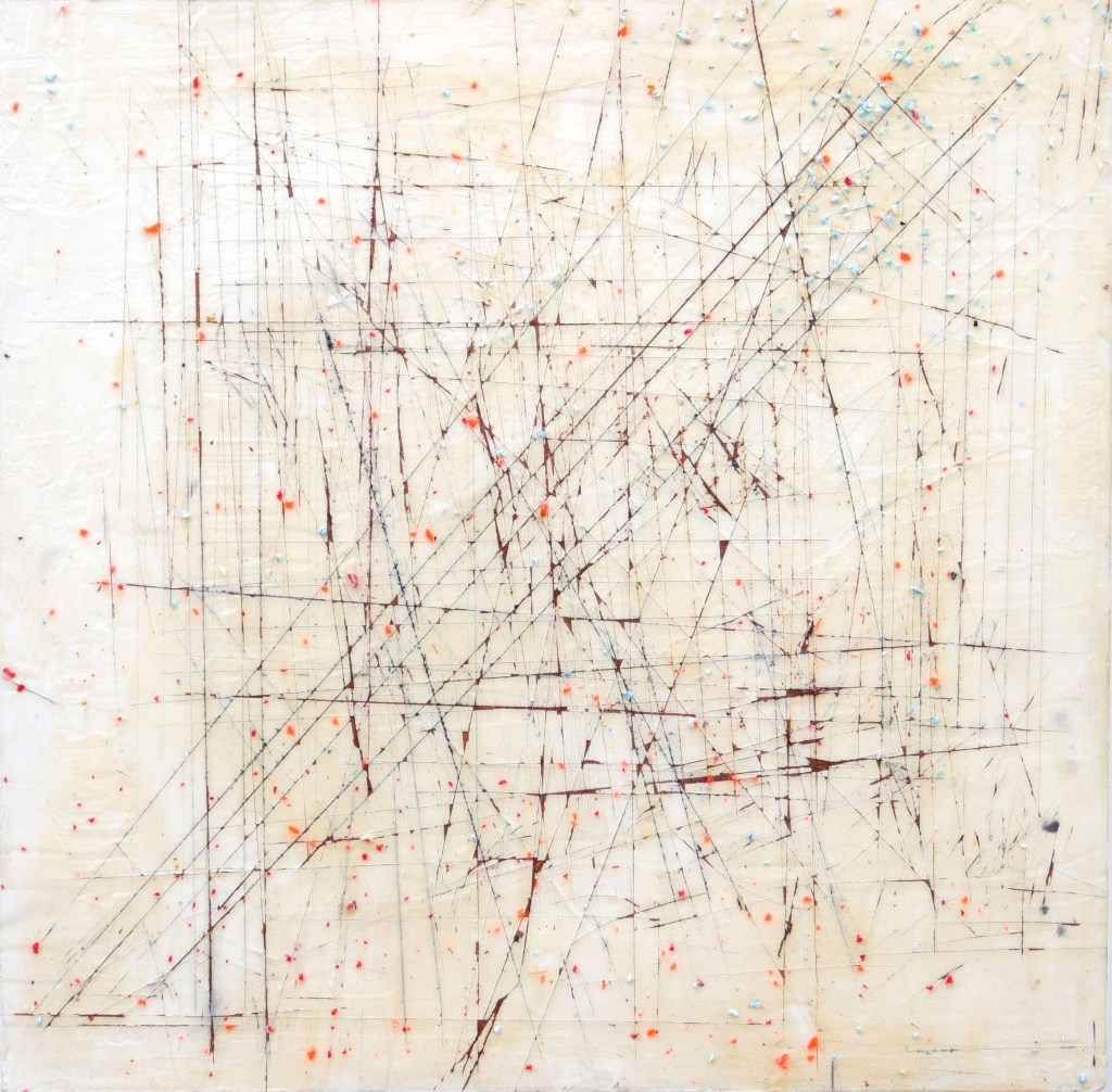 „Cuts 2“ 2020, acrylic, acrylic paint & vinyl dust on mdf, 48 x 49 cm