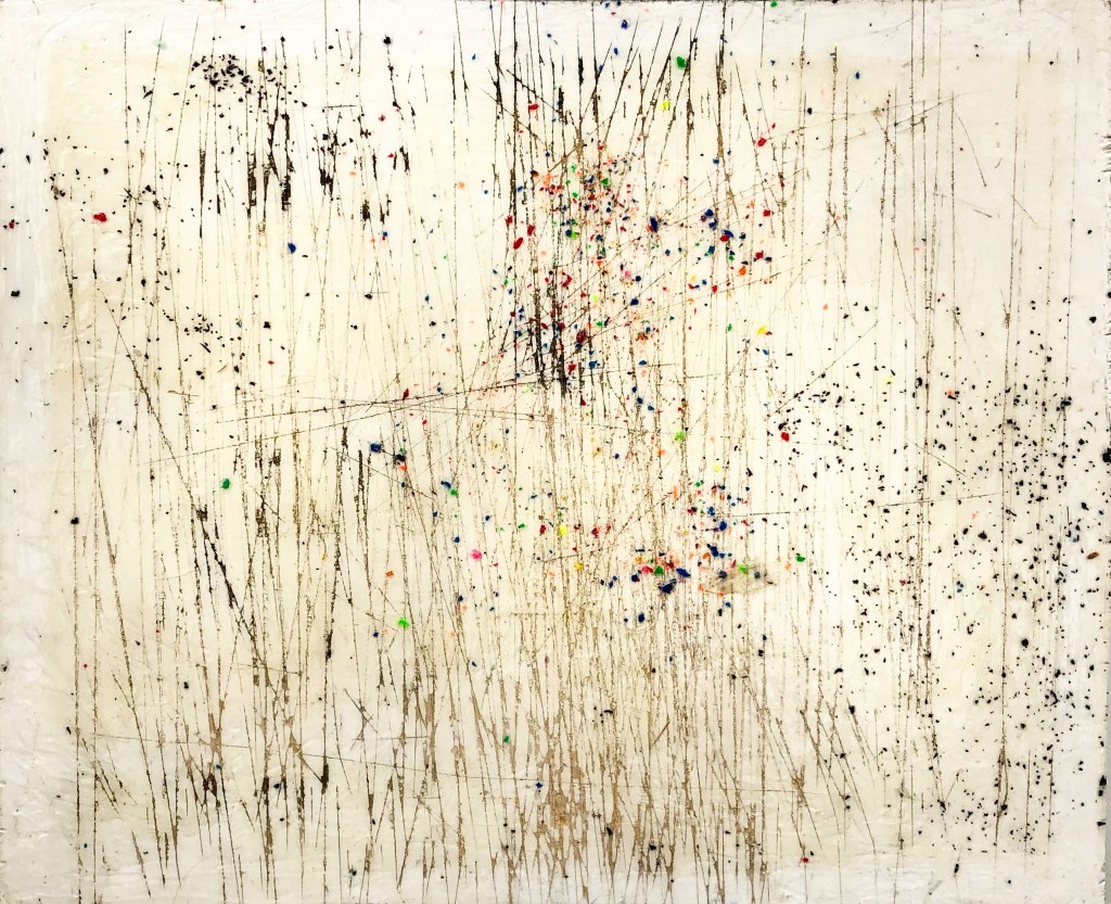 „Cuts 1“ 2020, acrylic, acrylic paint & vinyl dust on mdf, 30 x 34 cm